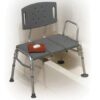 Without Back * Extra strength aluminum will accomodate individuals up to 500 Lbs. * Cross brace attached with aircraft-type rivets * Blow-molded bench and back provide comfort and strength * Drainage holes in seat reduce slipping * Adjustable height legs * Aluminum Frame is lightweight durable and corrosion proof * Height: 16 1/2 – 20 1/2 * 20 width seat * Limited Lifetime Warranty * HCPCS Suggested Code: E0245 * KD